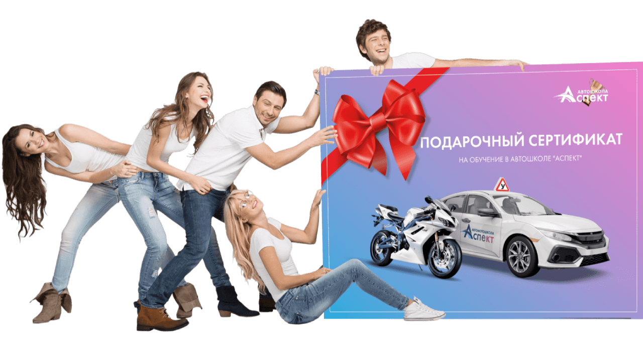 Вы можете приобрести подарочные сертификаты на обучение категории "А" и В" в любом филиале Автошколы "АСПЕКТ".